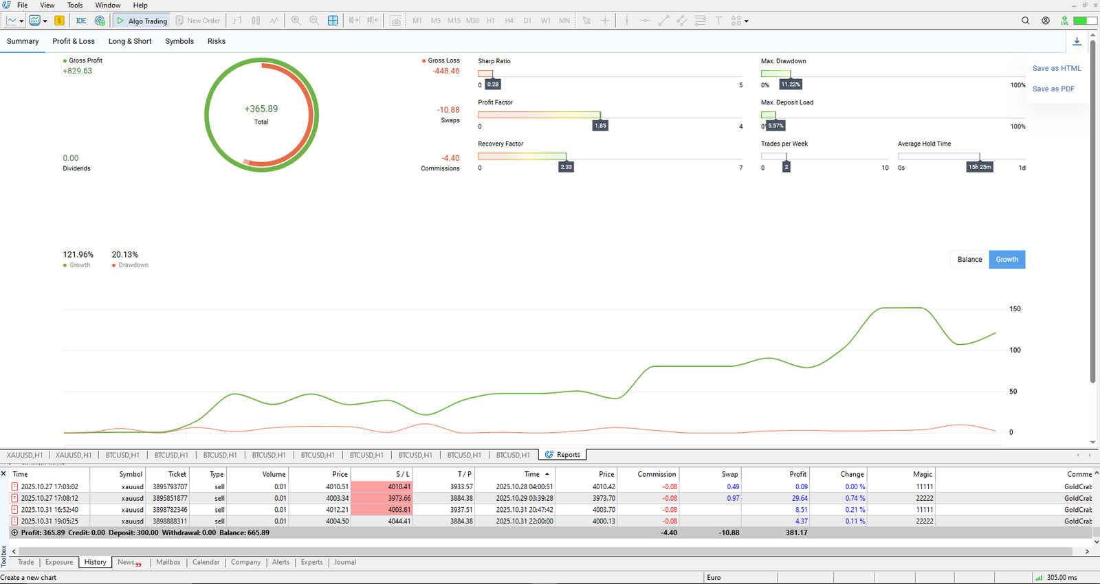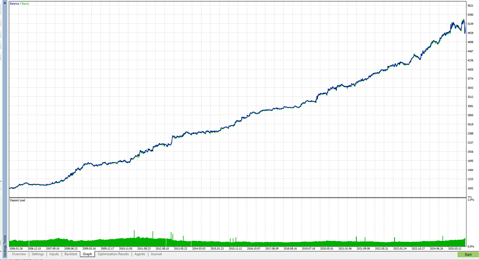 Because MT5 shows both balance and equity curves, you can also see how floating losses evolve and understand the strategy’s risk profile more intuitively.
